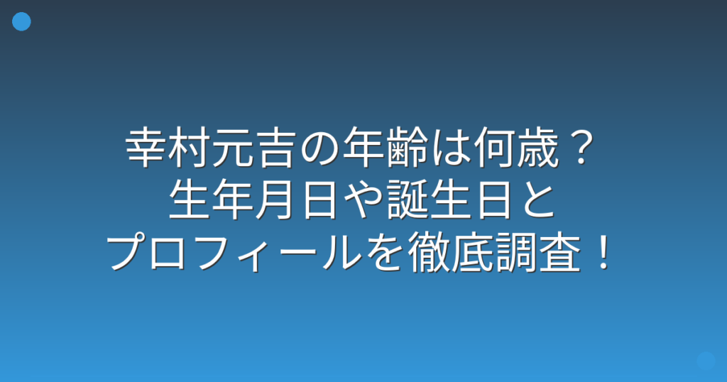 幸村元吉の年齢は何歳?生年月日や誕生日とプロフィールを徹底調査!