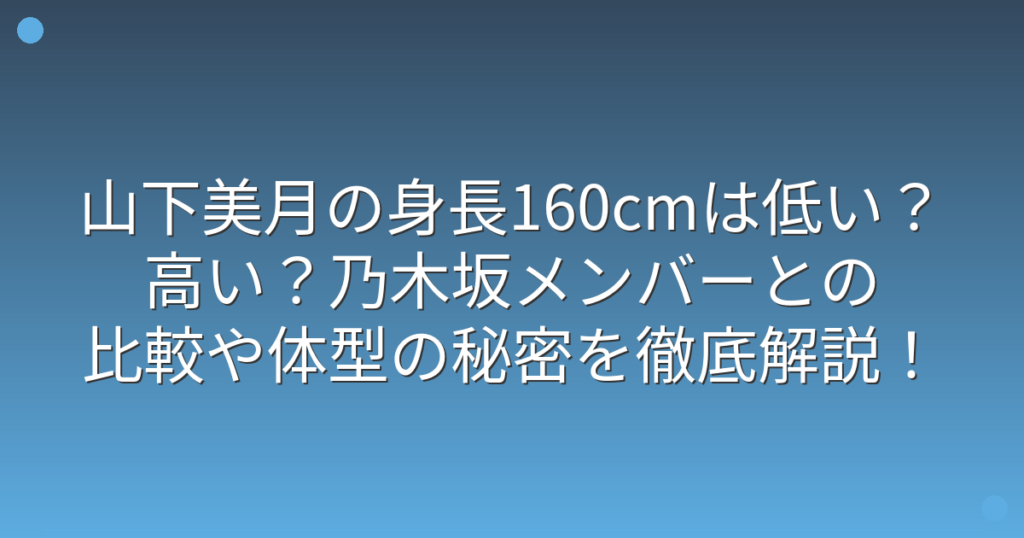山下美月の身長160cmは低い?高い?乃木坂メンバーとの比較や体型の秘密を徹底解説!
