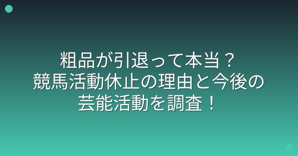 粗品が引退って本当?競馬活動休止の理由と今後の芸能活動を調査!