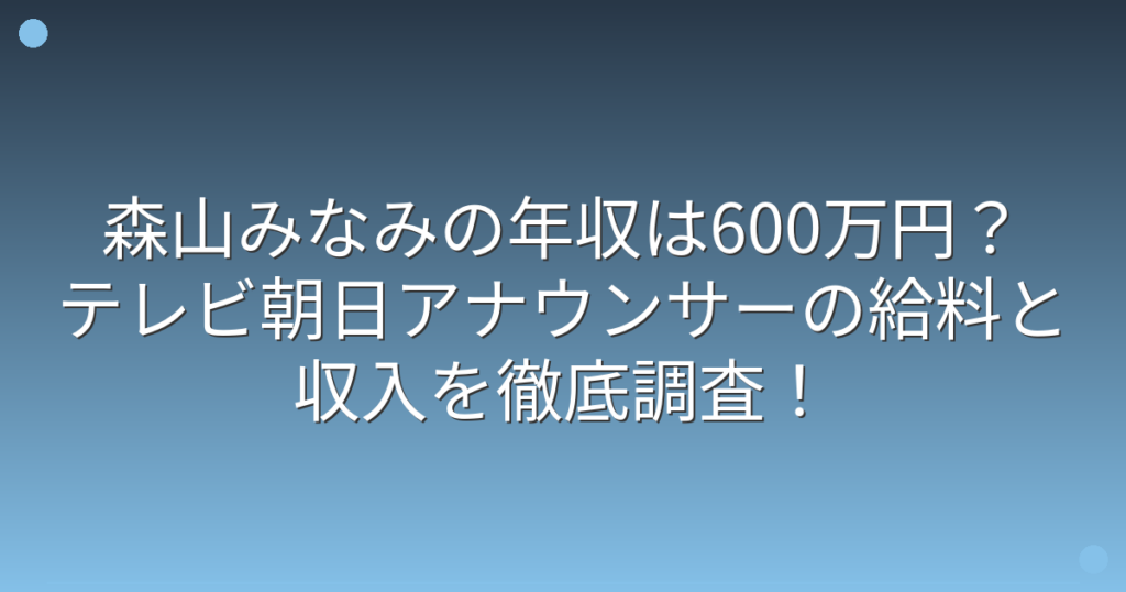 森山みなみの年収は600万円?テレビ朝日アナウンサーの給料と収入を徹底調査!