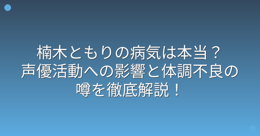 楠木ともりの病気は本当?声優活動への影響と体調不良の噂を徹底解説!