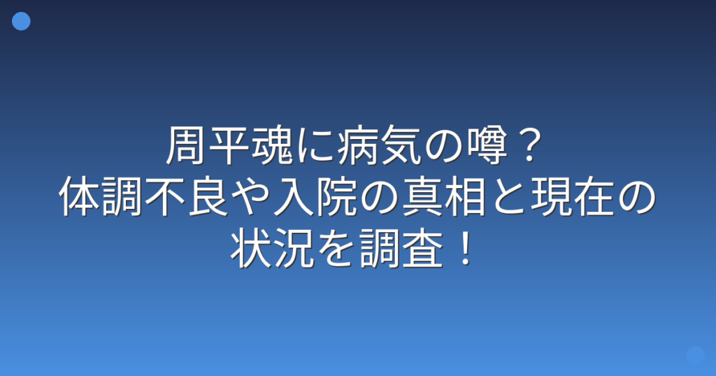 周平魂に病気の噂?体調不良や入院の真相と現在の状況を調査!
