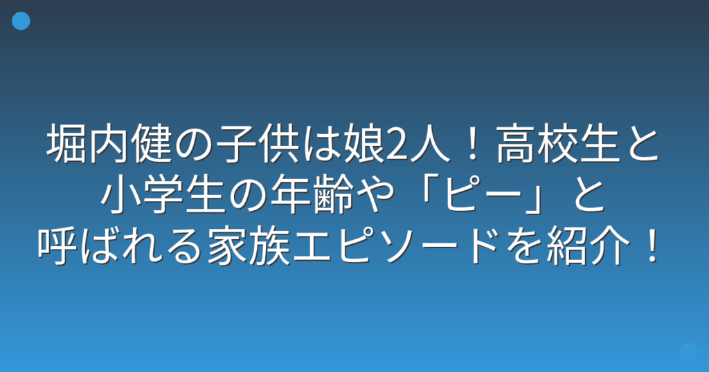 堀内健の子供は娘2人!高校生と小学生の年齢や「ピー」と呼ばれる家族エピソードを紹介!