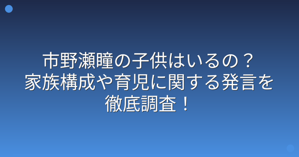 市野瀬瞳の子供はいるの?家族構成や育児に関する発言を徹底調査!