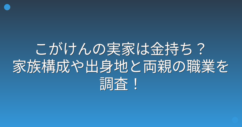 こがけんの実家は金持ち?家族構成や出身地と両親の職業を調査!
