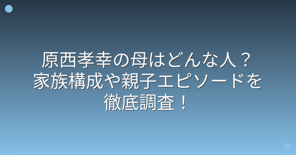 原西孝幸の母はどんな人?家族構成や親子エピソードを徹底調査!
