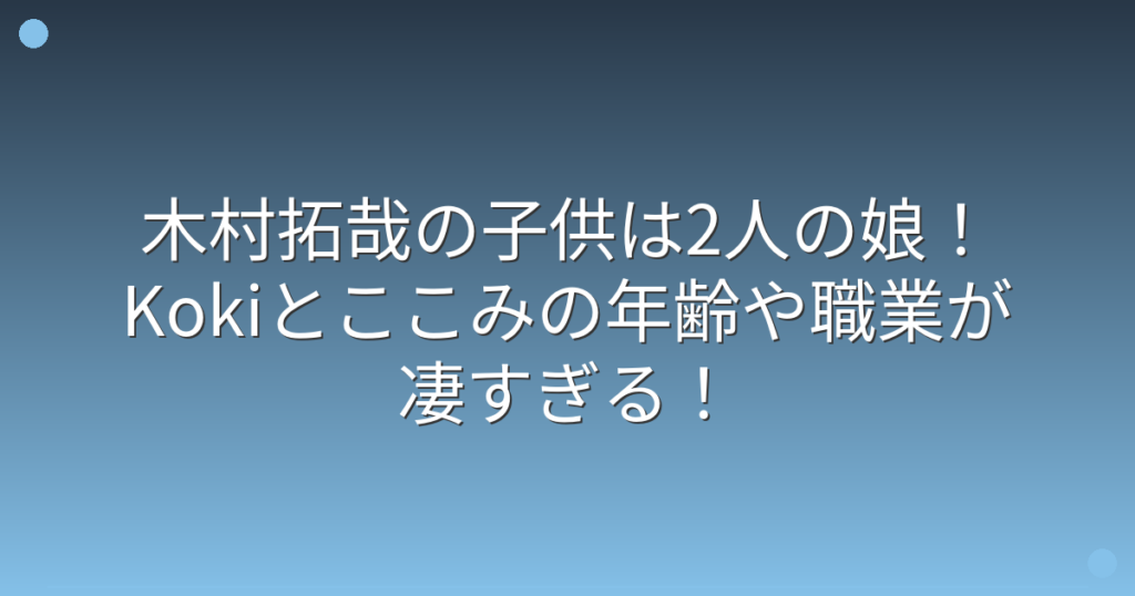 木村拓哉の子供は2人の娘!Kokiとここみの年齢や職業が凄すぎる!