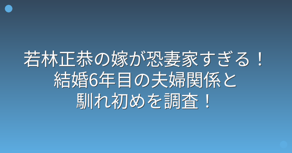 若林正恭の嫁が恐妻家すぎる!結婚6年目の夫婦関係と馴れ初めを調査!