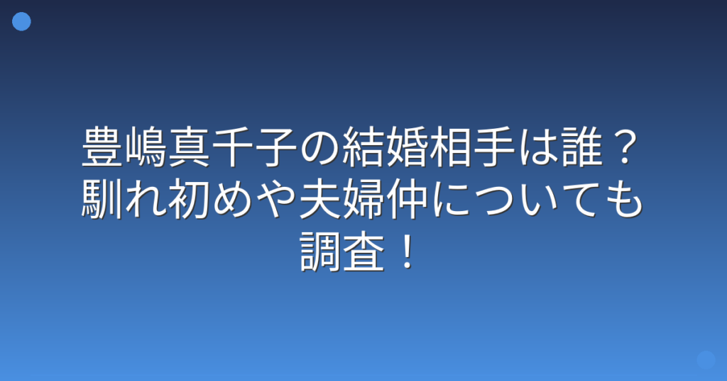 豊嶋真千子の結婚相手は誰?馴れ初めや夫婦仲についても調査!
