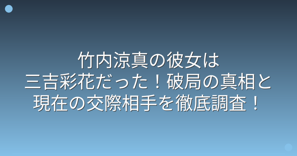 竹内涼真の彼女は三吉彩花だった!破局の真相と現在の交際相手を徹底調査!