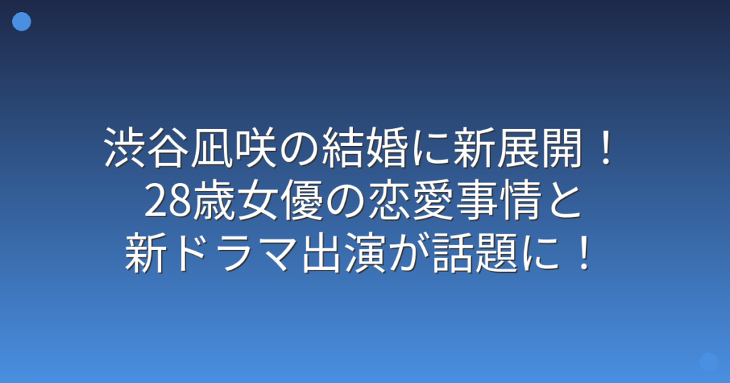 渋谷凪咲の結婚に新展開!28歳女優の恋愛事情と新ドラマ出演が話題に!