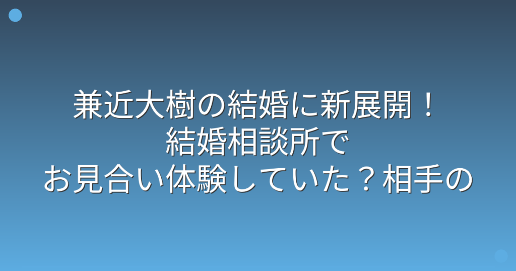 兼近大樹の結婚に新展開!結婚相談所でお見合い体験していた?相手の反応が意外すぎる!