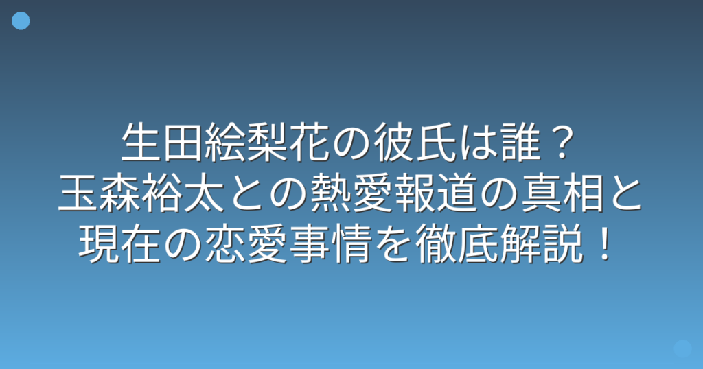 生田絵梨花の彼氏は誰?玉森裕太との熱愛報道の真相と現在の恋愛事情を徹底解説!