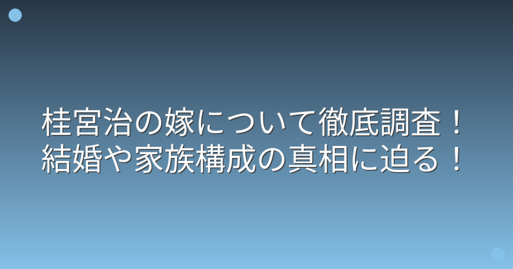 桂宮治の嫁について徹底調査!結婚や家族構成の真相に迫る!