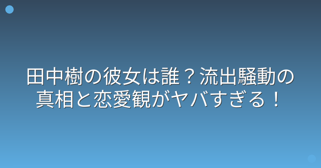 SixTONESの田中樹さんの恋愛事情が、ファンの間で大きな注目を集めています。 特に2023年に起きたプライベート写真の流出騒動は、大きな話題となりました。 そこで今回は、田中樹さんの彼女や恋愛に関する最新情報を、詳しくお伝えしていきましょう! 田中... -