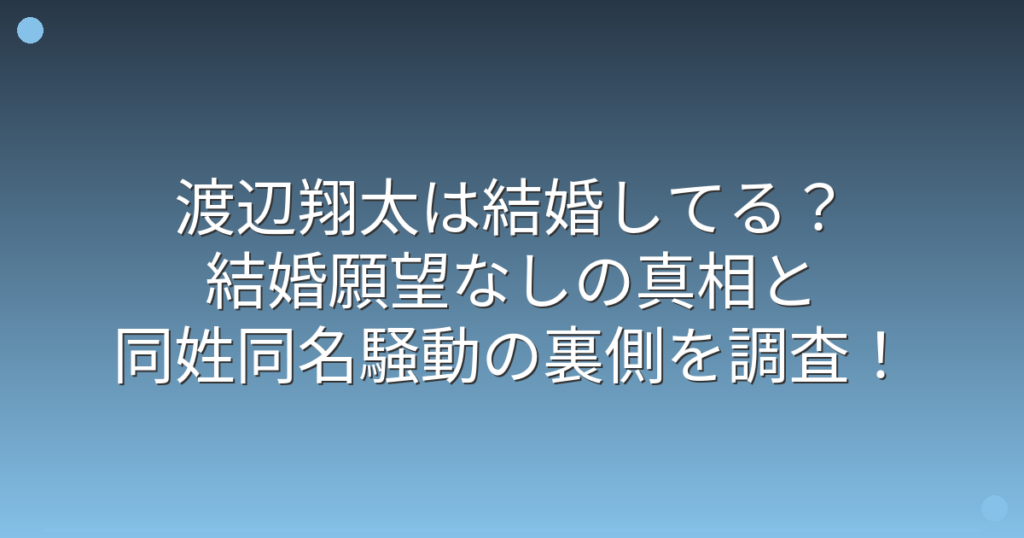 渡辺翔太は結婚してる?結婚願望なしの真相と同姓同名騒動の裏側を調査!