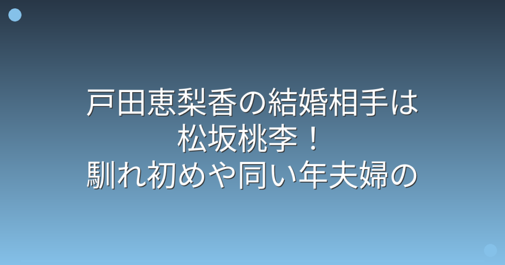 女優の戸田恵梨香さんが2020年に結婚を発表してから、その幸せな結婚生活が注目を集めていますね。 結婚相手は誰なのか、どのように出会ったのか、そして現在の夫婦生活はどうなっているのか気になる方も多いのではないでしょうか。 そこで今回は、戸田恵... -