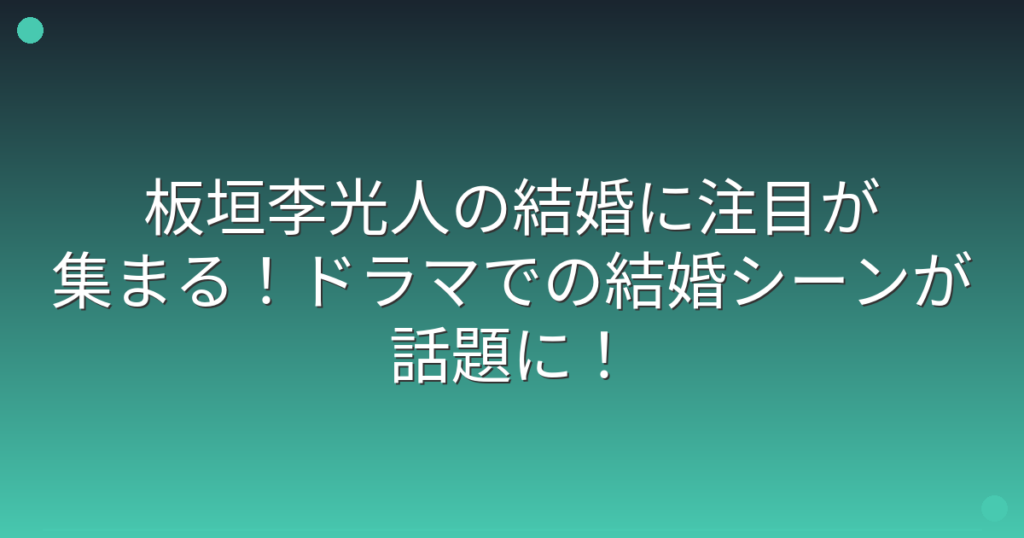 若手俳優として活躍中の板垣李光人さんが、テレビ朝日系ドラマ「しあわせな結婚」に出演し、話題を集めています。 結婚をテーマにしたドラマでの演技が高く評価され、板垣さんの実際の結婚についても注目が集まっているようです。 そこで今回は、板垣李光... -