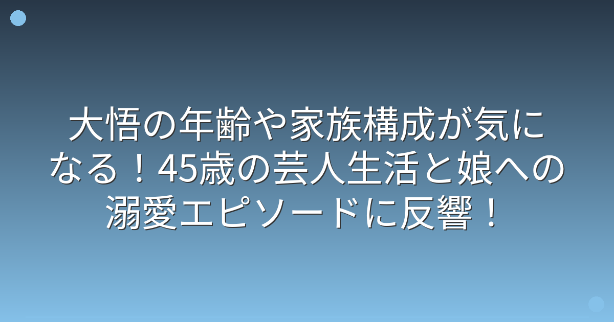 大悟の年齢や家族構成が気になる!45歳の芸人生活と娘への溺愛エピソードに反響!