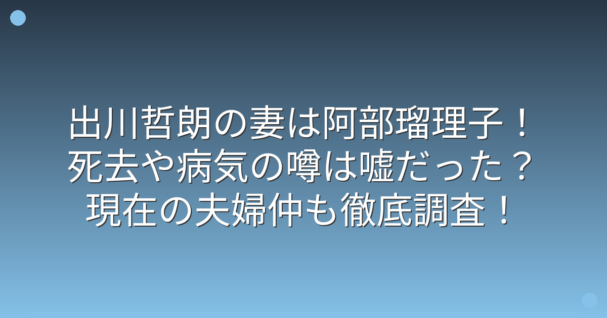 特に妻の阿部瑠理子さんの健康状態や、夫婦関係について気になっている方も多いのではないでしょうか。