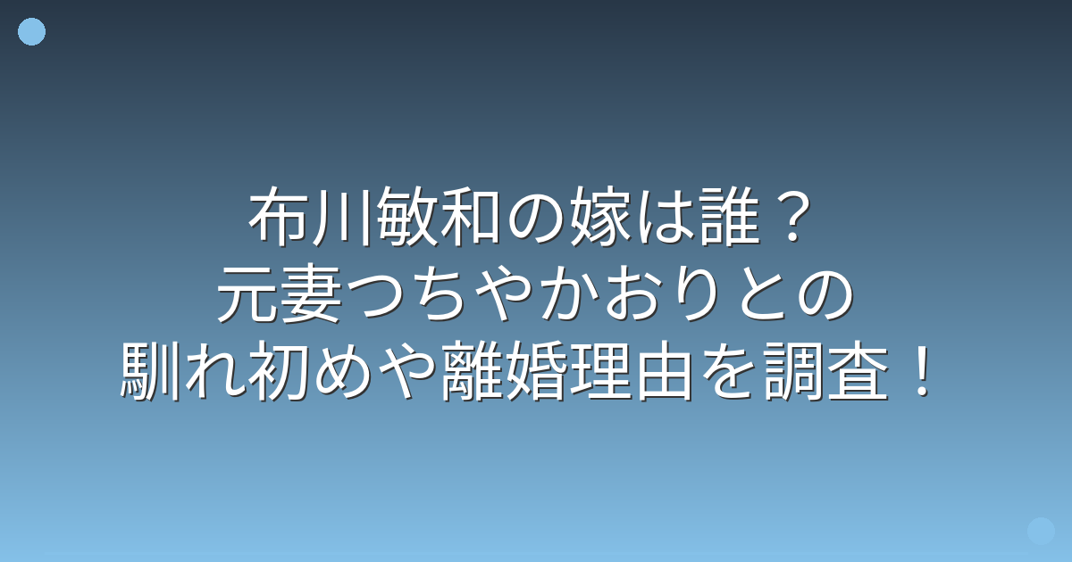 そこで今回は、布川敏和さんの嫁や元妻との馴れ初め、離婚理由について詳しく見ていきましょう!