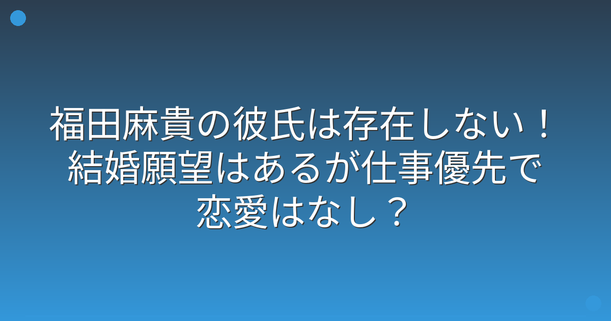 福田麻貴さんは現在、仕事に専念している状況で、恋愛に関する発言も特にありません。