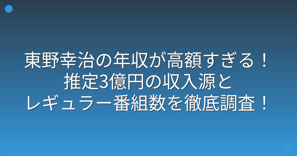 東野さんの年収は公式に発表されているわけではありませんが、業界関係者の推測や出演番組数、番組のギャラ相場などから総合的に判断すると、2億円から3億円という数字は信憑性が高いと言われています。
