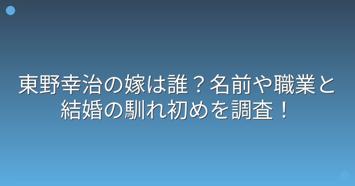 今回は、東野幸治さんの嫁や結婚に関する情報をできる限り整理し、名前や年齢、職業、結婚生活のエピソードなどをまとめてご紹介します。