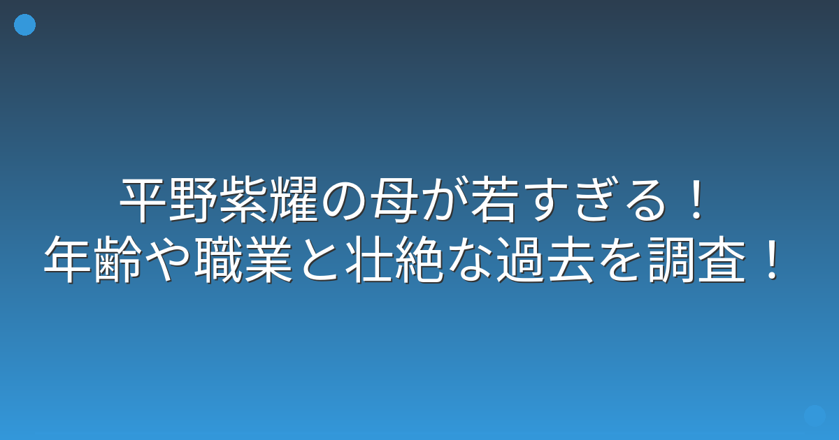 平野紫耀さんの母親は10代で出産し、現在は40代前半から半ばという若さで、複数の仕事を掛け持ちしながら子供たちを育ててきた苦労人であることが分かりました。