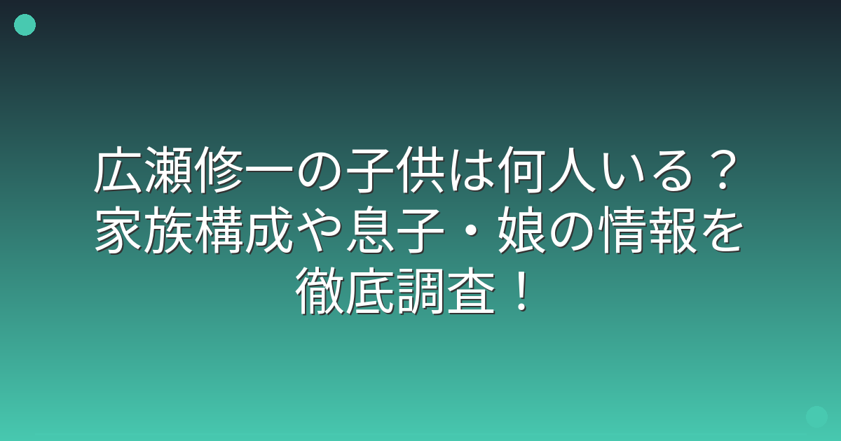調査の結果、広瀬修一さんの子供の有無や家族構成については、公開されている情報がほとんどないことが分かりました。