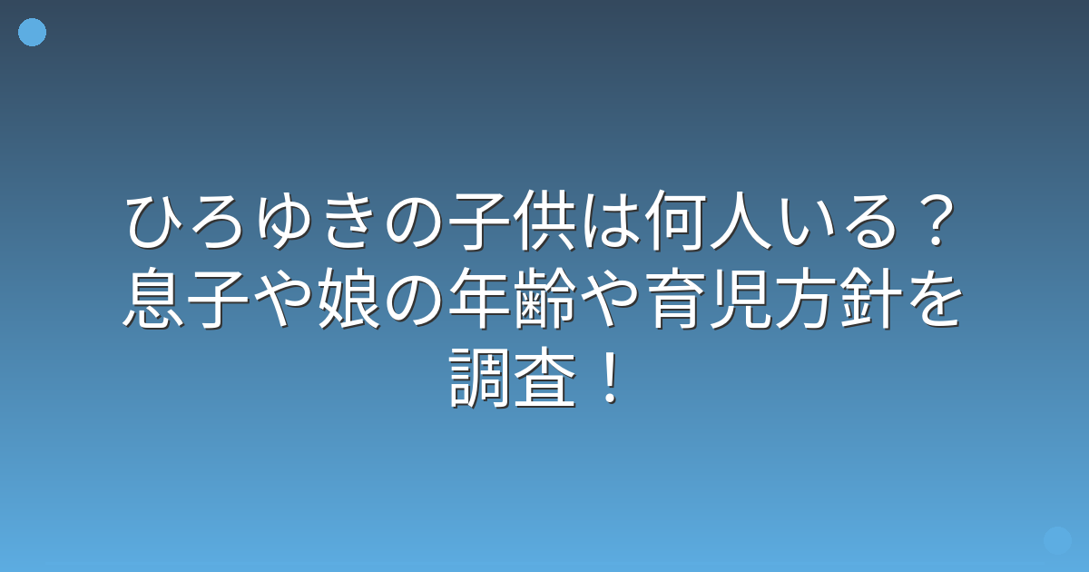 そこで今回は、ひろゃきさんの子供について、息子や娘の存在、育児方針などを詳しく見ていきましょう!