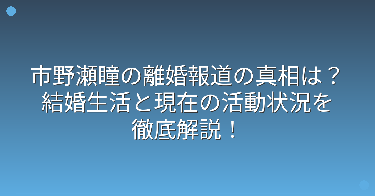 そこで今回は、市野瀬瞳さんの離婚報道の真相や、結婚生活の実態、現在の活動状況について詳しく見ていきましょう!