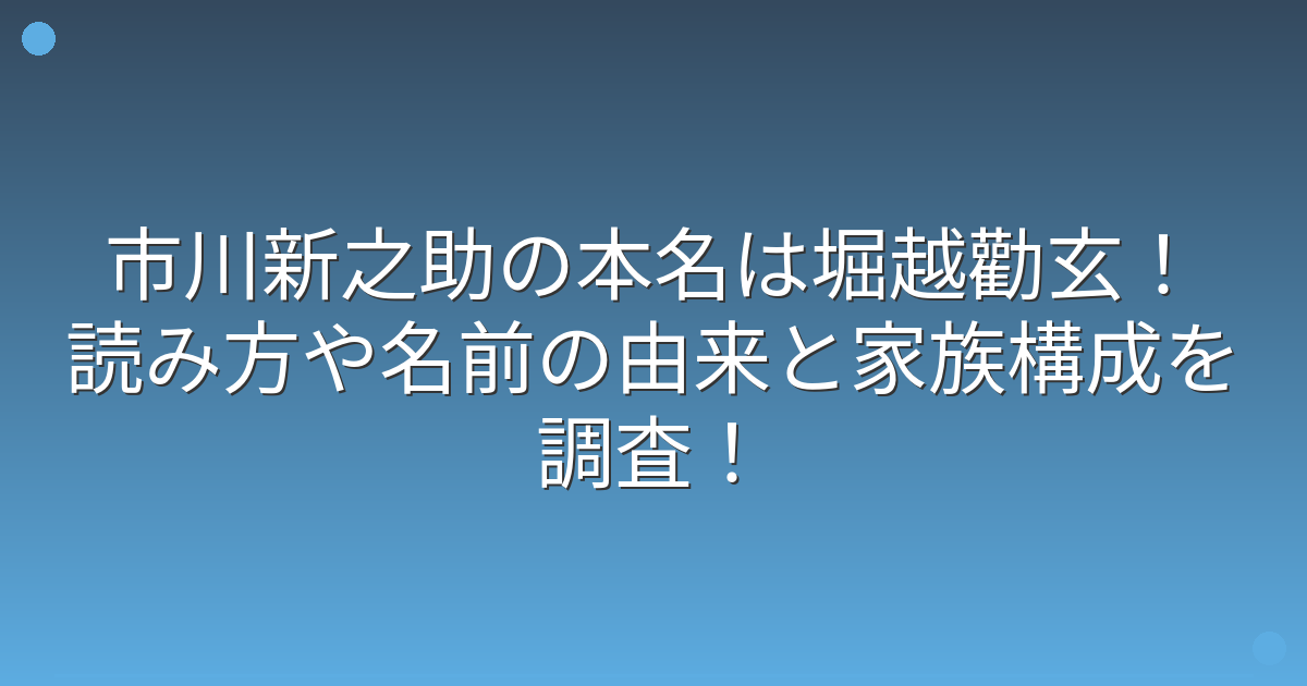 市川新之助さんの本名は「堀越勸玄(ほりこし かんげん)」で、「市川新之助」は歌舞伎役者としての芸名であることが分かりました。