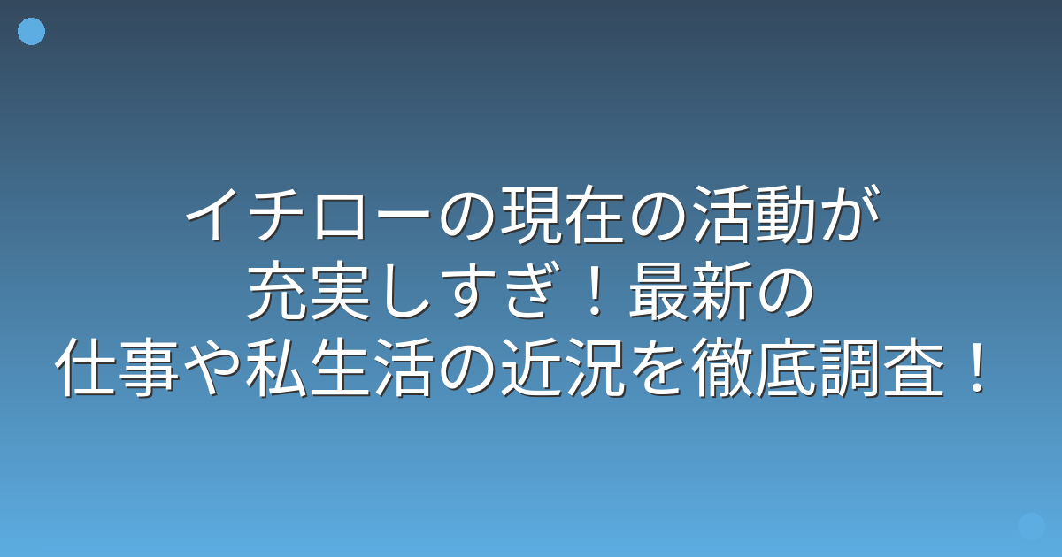 今回は、イチローさんの現在の活動や仕事、私生活の近況についてお伝えしてきました。