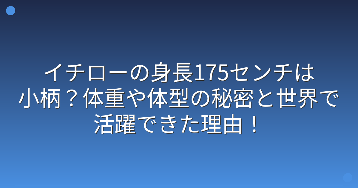 そこで今回は、イチローさんの身長や体重、そして小柄な体型でも世界のトップで活躍できた理由について詳しく見ていきましょう!