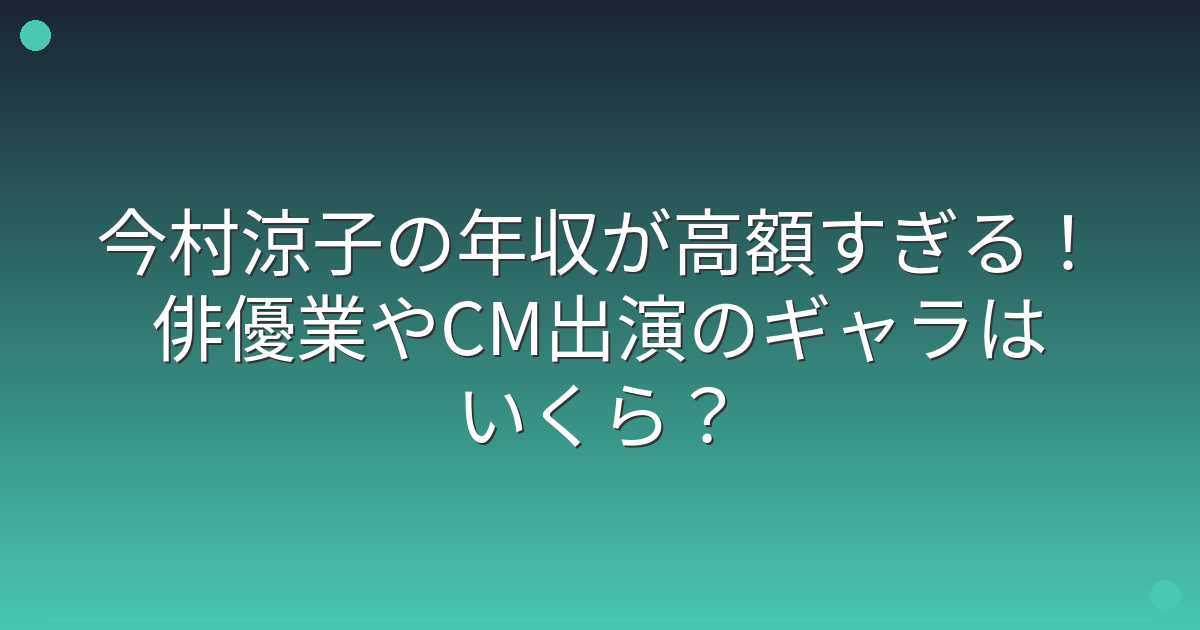 ドラマやCMなど幅広く活動されている今村涼子さんですが、実際にどれくらいの収入があるのか気になる方も多いのではないでしょうか。