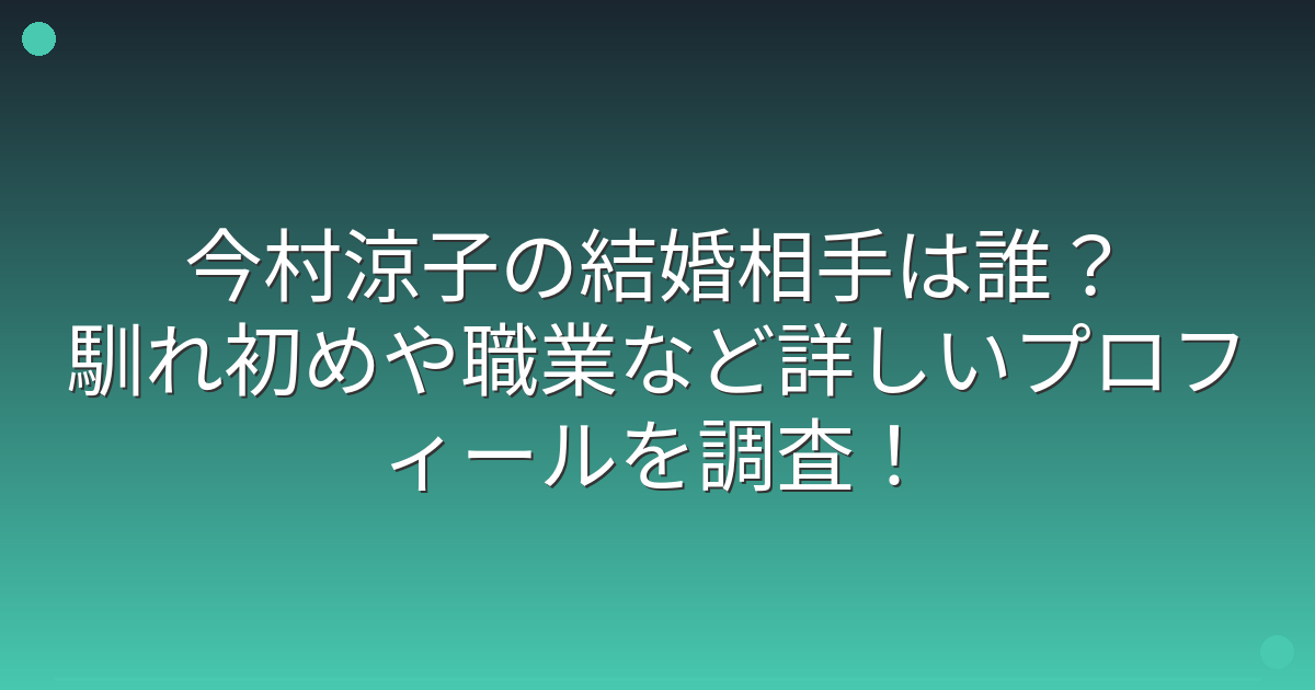 今村涼子の結婚相手は誰?