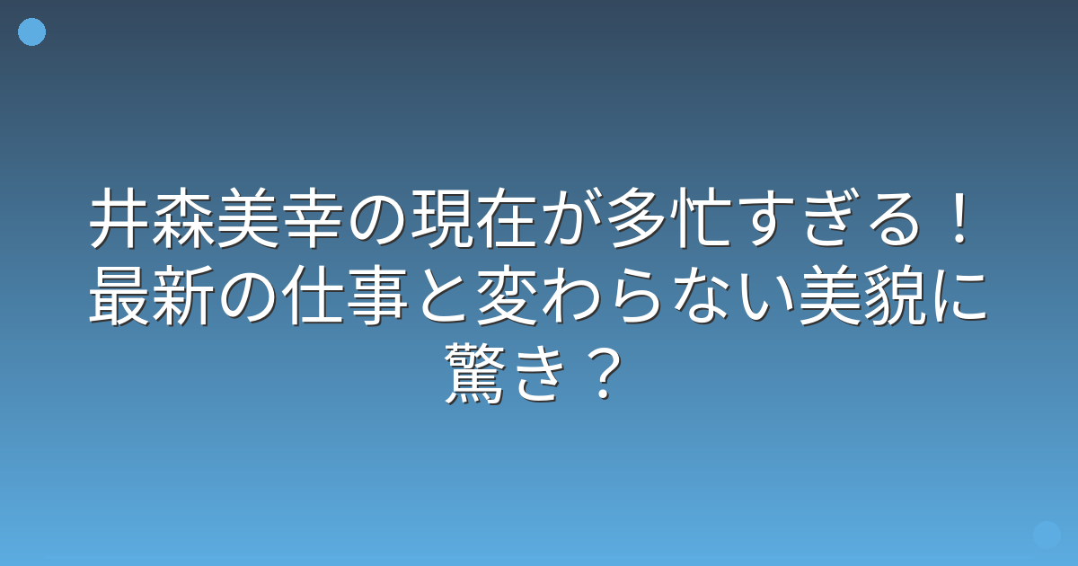 今回は、井森美幸さんの現在の活動状況や最新の仕事内容、そして変わらない美貌の秘密についてお伝えしてきました。