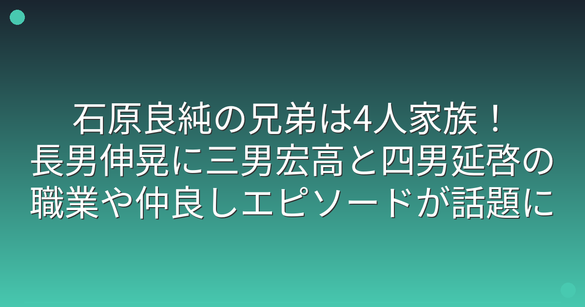石原良純さんは4人兄弟の次男で、長男・伸晃さん(元政治家)、三男・宏高さん(政治家)、四男・延啓さん(美術家)という構成になっています。