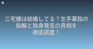 しかし板橋駿谷さんに関しては、そのような公式発表が存在しないため、現時点では結婚していないと考えるのが妥当でしょう。