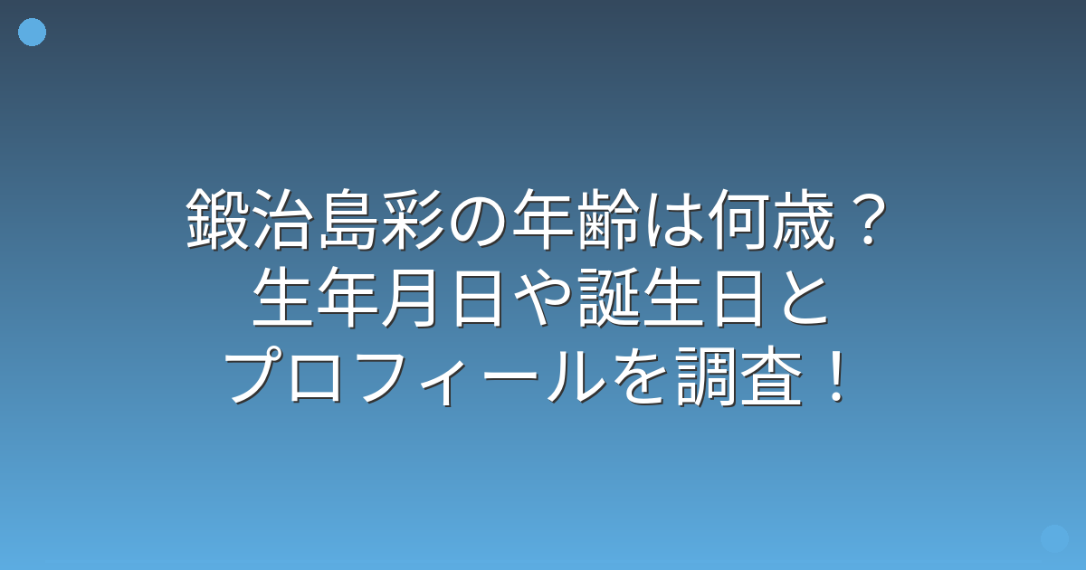 そこで今回は、鍛治島彩さの年齢や生年月日、詳しいプロフィールについて見ていきましょう!