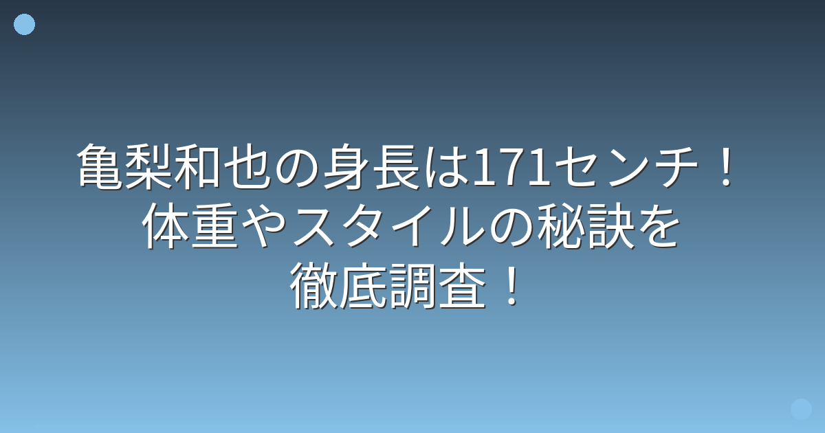 亀梨さんの身長は公式プロフィールで171センチ、体重は約58キロと公表されており、この数値は複数の信頼できる情報源で一貫して示されています。