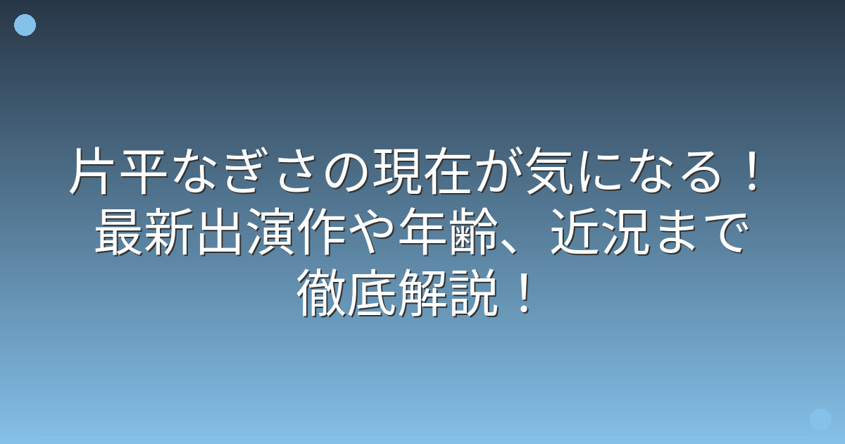 そこで今回は、片平なぎささんの現在の活動状況や近況について、詳しくご紹介していきましょう!