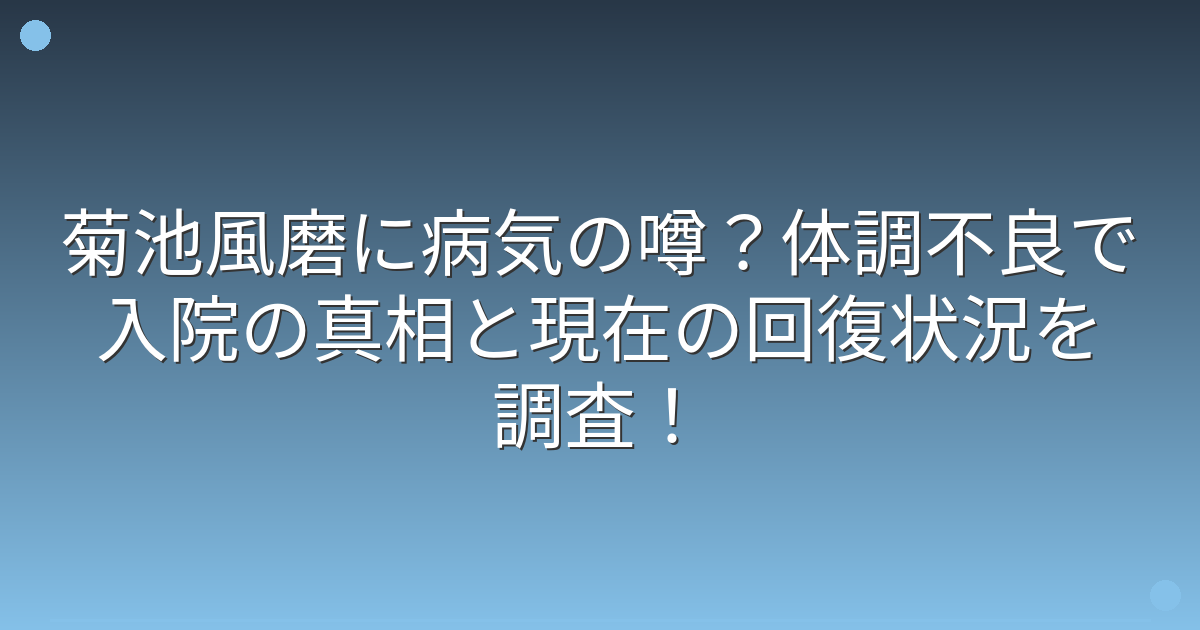 体調不良や入院といった情報も飛び交っており、多くの方が菊池風磨さんの健康状態について気になっているようです。