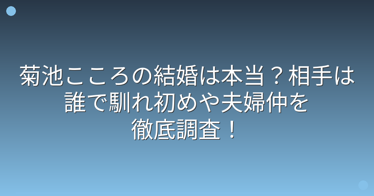 そこで今回は、菊池こころさんの結婚の真相や相手、馴れ初めや夫婦仲について詳しく見ていきましょう!