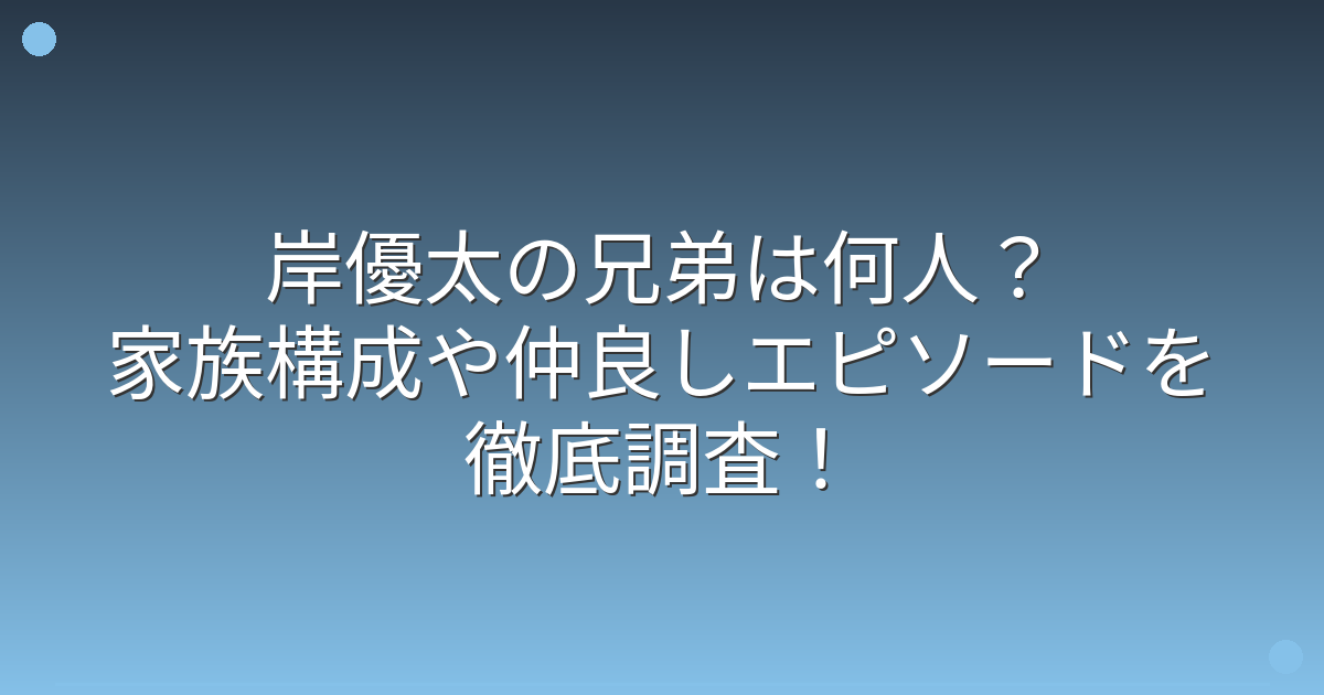 そんな岸優太さんの兄弟や家族構成について気になっている方も多いのではないでしょうか。