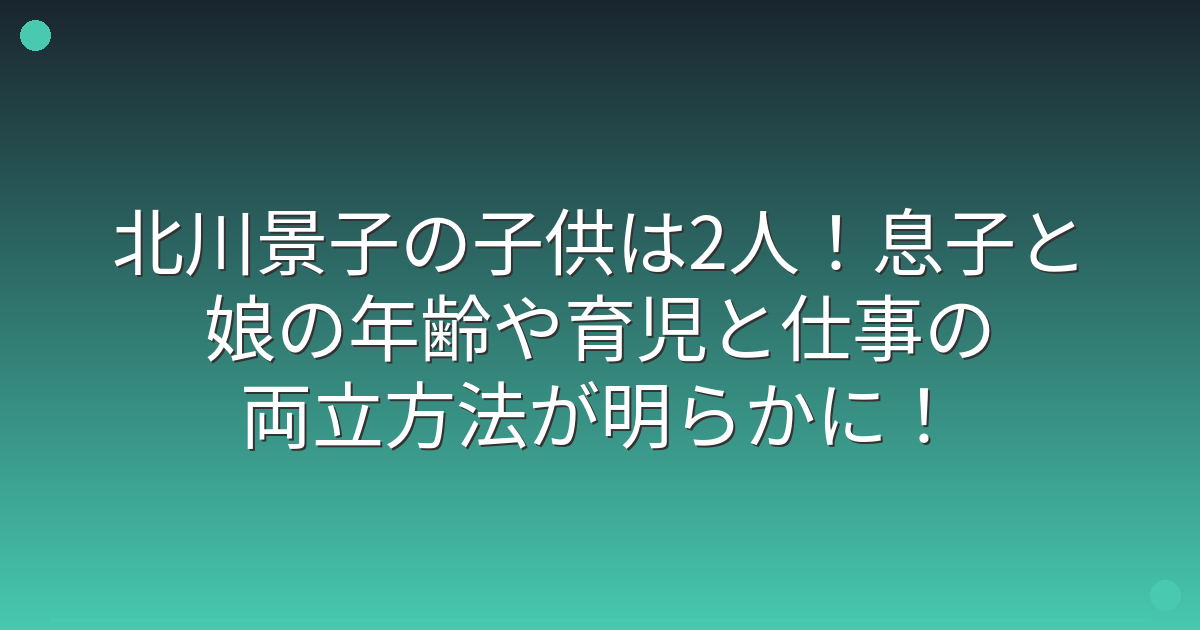 北川景子さんは現在、2人のお子さんを持つ母親として活動されています。