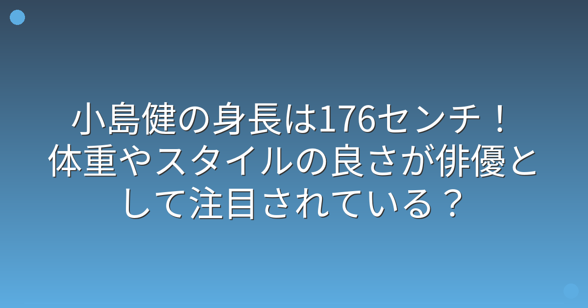俳優として活躍する小島健さんの身長やスタイルが話題になっていますね。