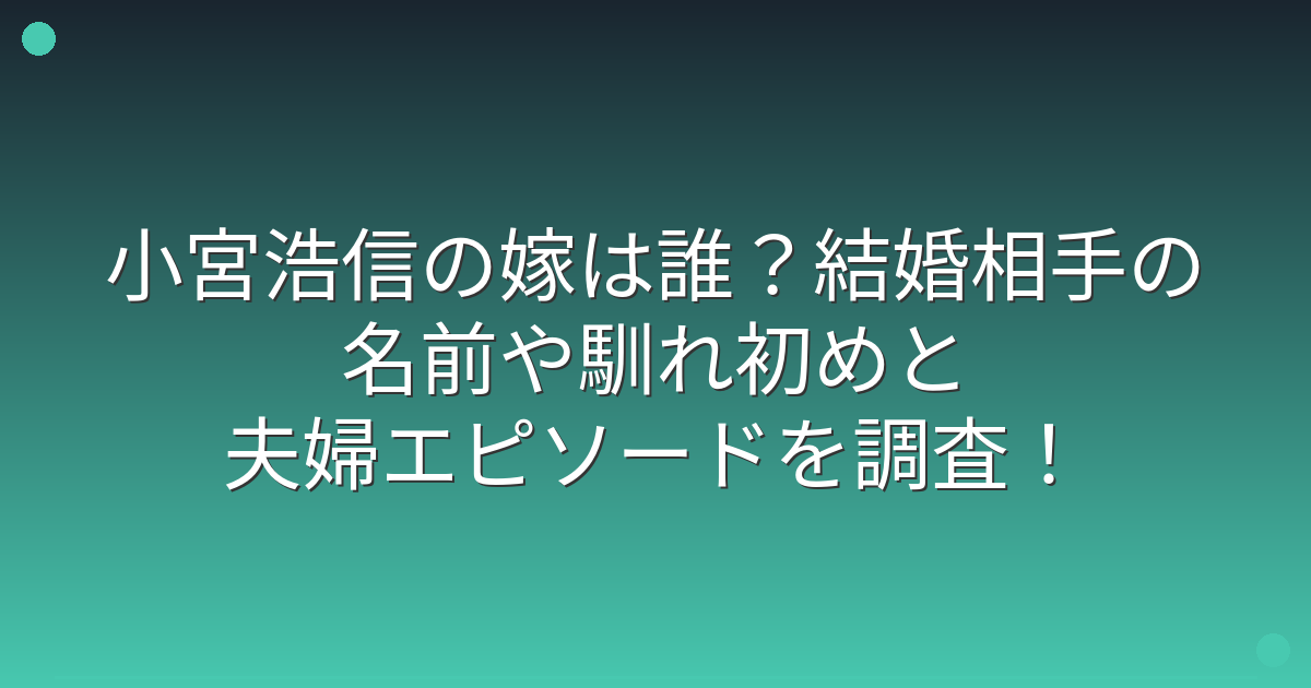 小宮浩信さんと嫁の馴れ初めについても、ファンの関心が高まっています。