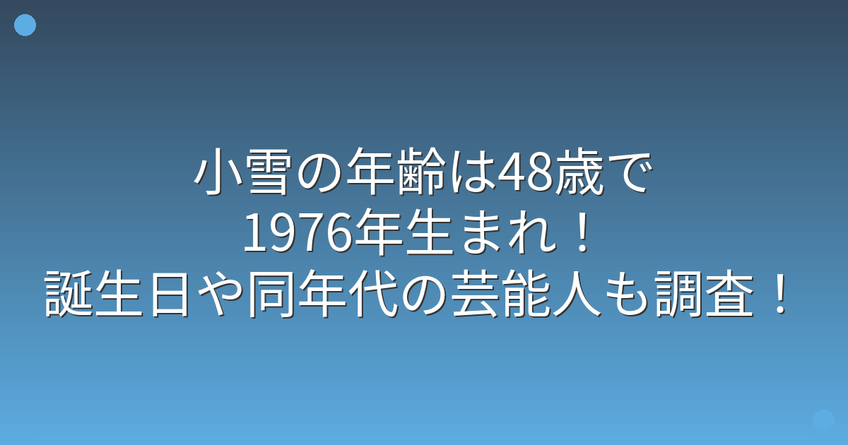 そんな小雪さんの年齢や生年月日について、気になっている方も多いのではないでしょうか。